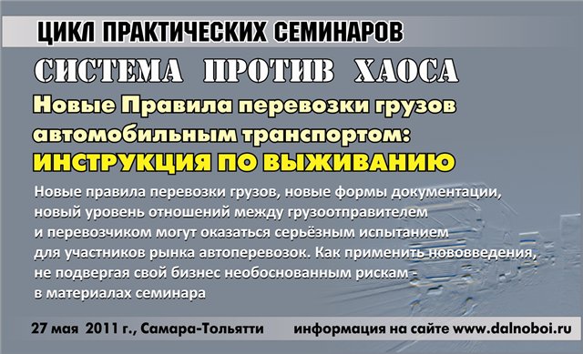 Постановление от 15 апреля 2011 г. №272 Об утверждении Правил перевозок грузов автомобильным транспортом В соответствии со статьей 3 Федерального закона «Устав автомобильного транспорта и городского наземного электрического транспорта» Правительство Российской Федерации постановляет: 1. Утвердить прилагаемые Правила перевозок грузов автомобильным транспортом. 2. Настоящее постановление вступает в силу по истечении 3 месяцев со дня его официального опубликования, за исключением пунктов 3 и 4 Правил, утвержденных настоящим постановлением. Пункты 3 и 4 указанных Правил вступают в силу по истечении 12 месяцев со дня официального опубликования настоящего пос ... Читать дальше »